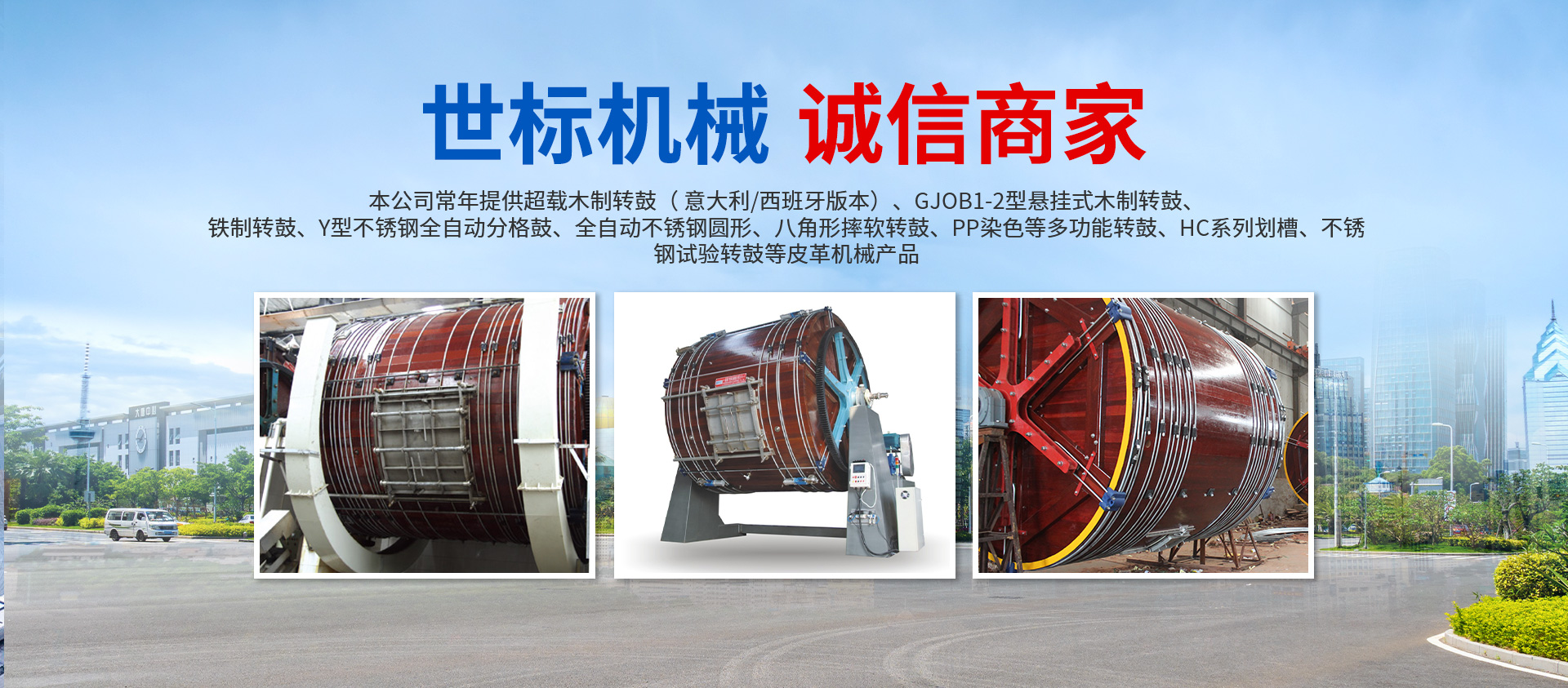 本公司常年提供超載木制轉鼓( 意大利/西班牙版本)、GJOB1-2型懸掛式木制轉鼓、鐵制轉鼓、Y型不銹鋼全自動分格鼓、全自動不銹鋼圓形、八角形摔軟轉鼓、PP染色等多功能轉鼓、HC系列劃槽、不銹鋼試驗轉鼓等皮革機械產品,產品暢銷浙江、山東、廣東、福建、河南、河北、四川、新疆、遼寧等地,且遠銷非洲、東南亞、南美洲、中美洲等多國,深受各大制革廠家的青睞。產品相繼通過省級鑒定和全國皮革、制鞋機械質量檢測監督中心的抽樣合格檢驗,在2010中國高新技術、新產品博覽會上一舉榮登銀獎寶座,其配件鋼芯泥塑鼓樁獲 專利權。本公司并向客戶提供皮革機械特殊規格設計、設備維修調試、技術改革等各項便捷服務,具有健全的檢測體系和可靠的售后服務。